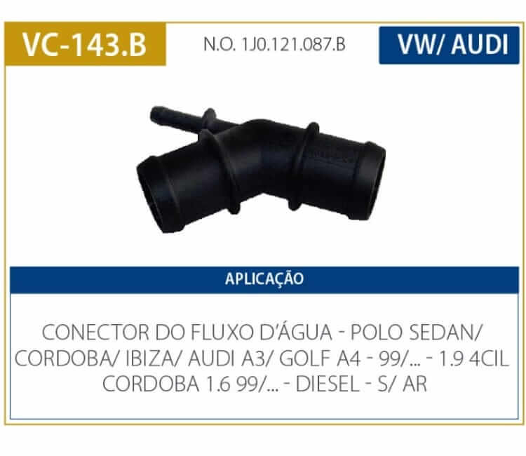 Conector Do Fluxo D’água Polo Audi A3 Golf A4. Produzido pela Valclei. Esse produto conta com material de excelente qualidade, garantindo uma boa durabilidade para a peça, com o objetivo de atender seu veiculo com o que existe de melhor no mercado.