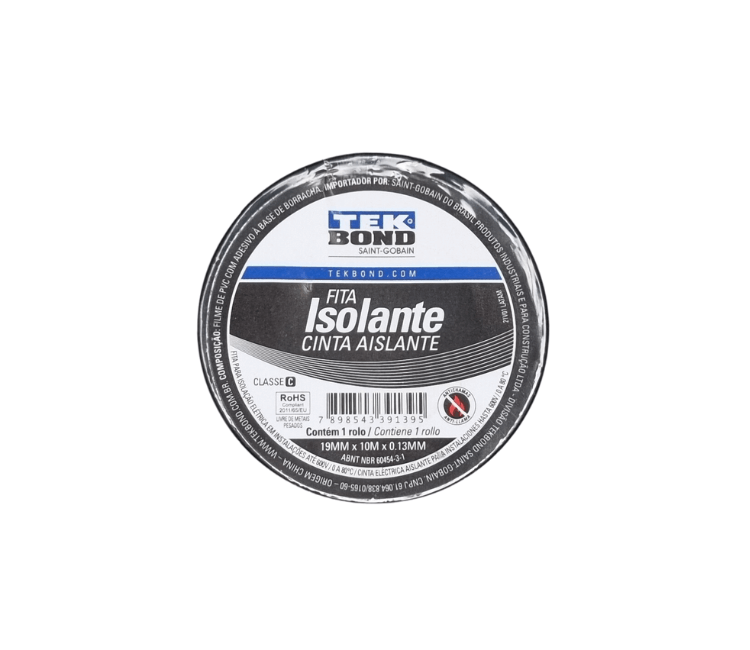 Fita isolante Tekbond 19mm X 10 metros X 0.13mm. Produto produzido pela Tekbond. Esse produto conta com material de excelente qualidade, garantindo uma boa durabilidade para a peça, com o objetivo de atender seu veiculo com o que existe de melhor no mercado.